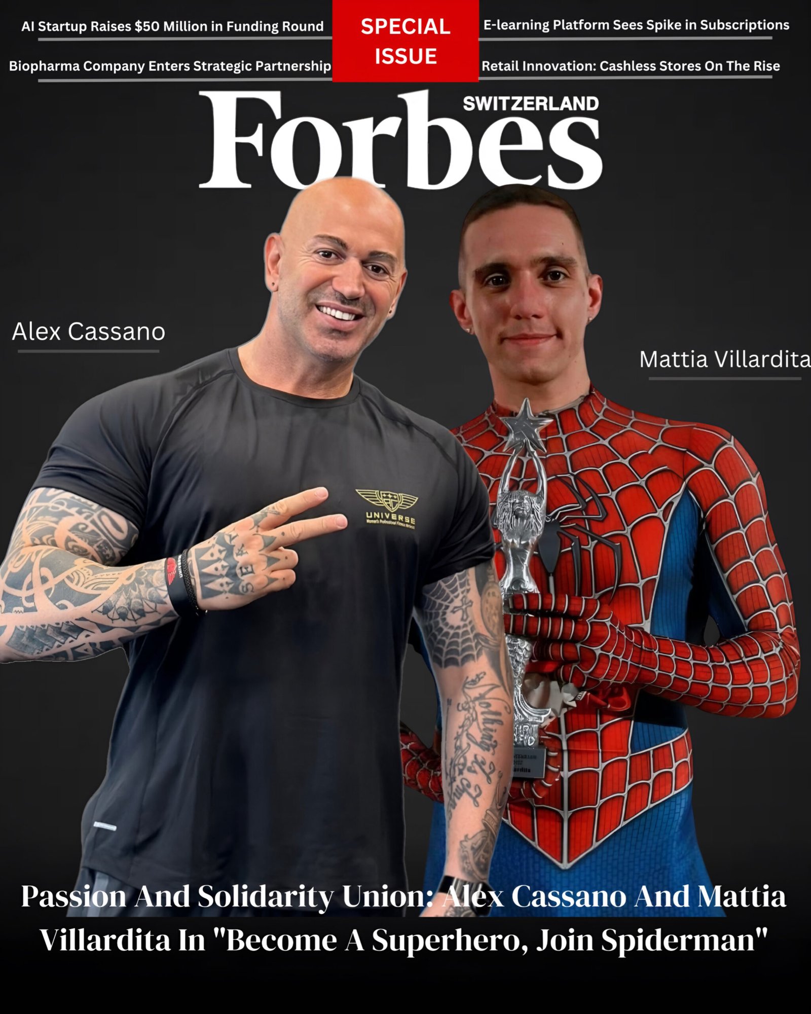 Alex Cassano and Mattia Villardita, after a successful meeting during an event in Parma, join forces for a new charity project. The event, titled “Become a superhero, join Spiderman,” will take place in Lugano, Switzerland, and will feature the participation of other distinguished figures such as Alessandro Bressan (Director of the Pediatric Institute of Swiss-Italian and member of the general management of EOC Canton Hospital Authority) and Luciano Anselmi (President of the Sick Child Foundation). Donations made during the event will be allocated to the Foundation for Sick Children of Italian Switzerland.